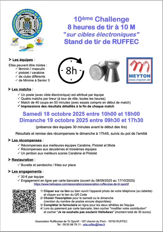 18 et 19 octobre 25 - RUFFEC - 8hoo de Tir - 10m