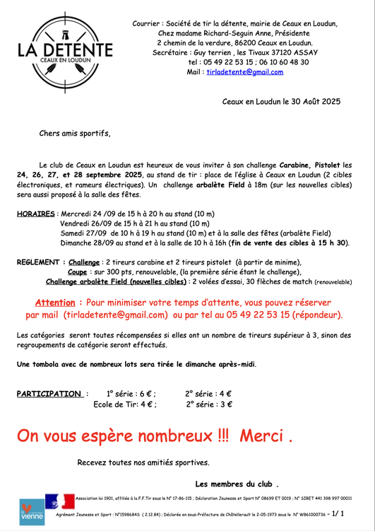 26 - 27 et 28 septembre 2025 - La Détente de Ceaux en Loudun