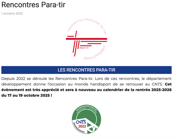 17 au 19 octobre 2025- Rencontres PARA-TIR - CNTS